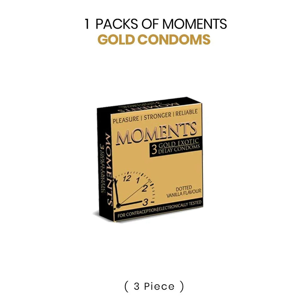 The moment gold condoms are stretchable and unbreakable condoms which provide protection as well as enhanced pleasure along with premium lubrication. It helps in boosting sexual performance are 100% electronically tested.