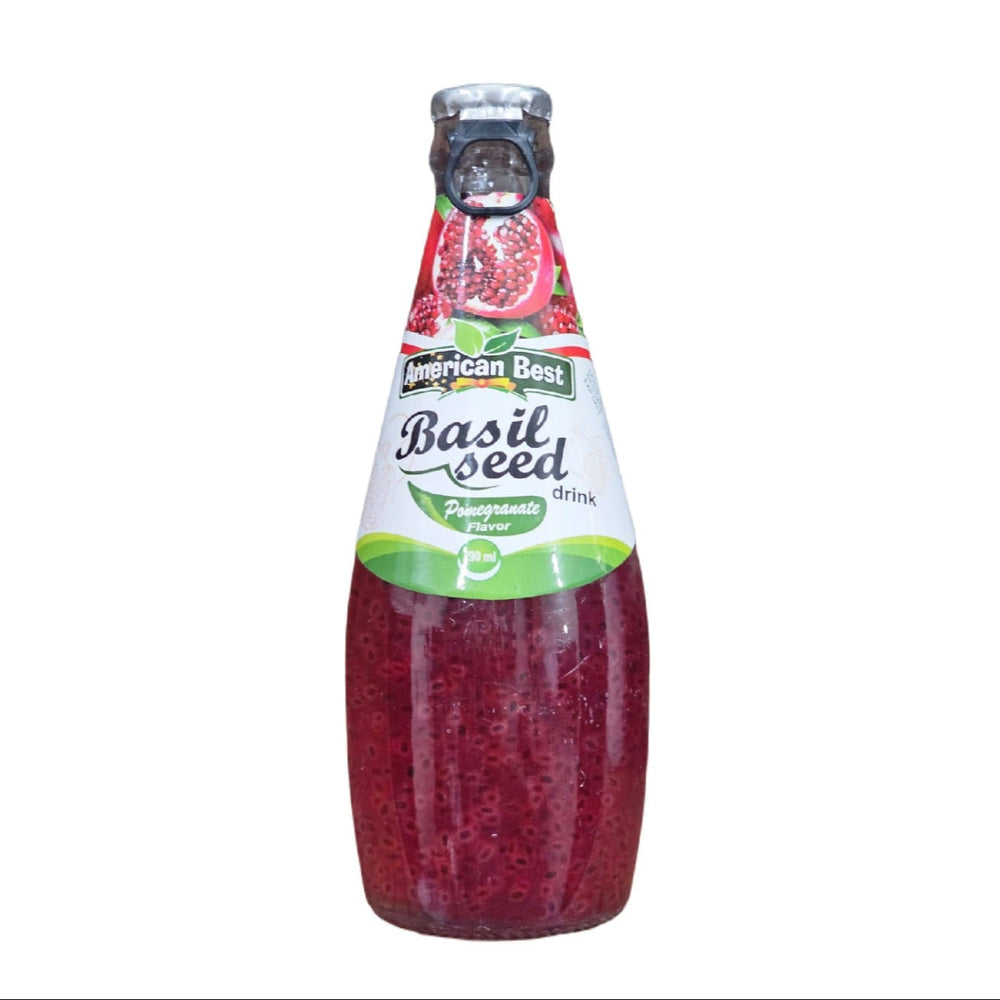 Experience the refreshing and exotic taste of our American Best Basil Seed drink with Pomegranate Flavour. Made with real basil seeds and the antioxidant-packed pomegranate, this 290ml drink will not only quench your thirst but also provide numerous health benefits. Don't miss out on this unique and delicious beverage.