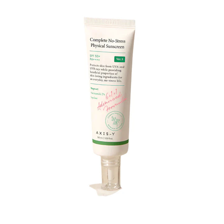 Axis Y Complete No Stress Physical Sunscreen offers comprehensive UV protection without irritation. This 50ml physical formulation creates a protective barrier on skin rather than absorbing into it. Ideal for sensitive skin types, it shields against environmental aggressors while maintaining skin comfort. The non-greasy formula integrates seamlessly into daily skincare routines for reliable sun defense.