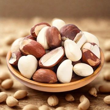 Brazil Nuts are a type of nut that grows in the Amazon rainforest in South America. They are large, round, and have a hard outer shell with a smooth, cream-colored interior. Brazil nuts are known for their rich, buttery flavor and are often enjoyed as a snack or used in cooking and baking. They are also a good source of healthy fats, protein, and various vitamins and minerals.