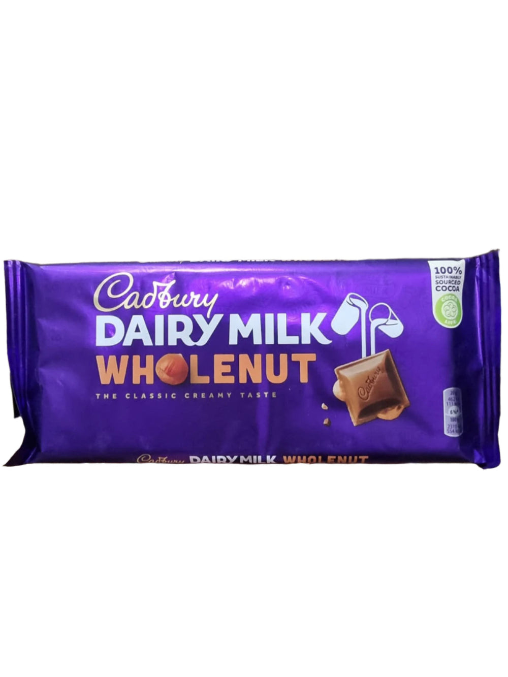 Cadbury Dairy Milk Whole Nut 180g is a delectable chocolate bar that combines the smooth, creamy richness of Cadbury Dairy Milk chocolate with whole, crunchy hazelnuts, creating the perfect balance of flavors and textures. This indulgent treat features generous whole hazelnuts embedded within the silky milk chocolate, allowing you to experience the perfect bite with each square.