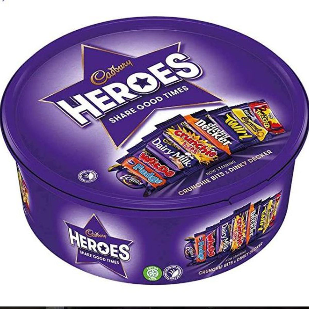 Cadbury Heroes Tub (550g) is a popular assortment of bite-sized chocolates from Cadbury, known for its iconic milk chocolate. The tub is perfect for parties, sharing, or snacking, and it includes a variety of Cadbury's most-loved chocolate bars in smaller, snack-sized portions.