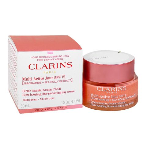 Clarins Paris Multi-Active SPF 15 Face Day Cream with Niacinamide+Sea Holly Extract, For All Skin Types, 50ml