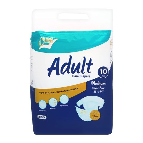 Cure Adult Care Diapers, Medium, 28x44 Inches, 10-Pack