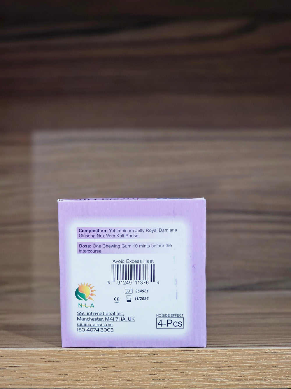 Durex Chewgum is a product designed for enhancing intimate experiences. It is a type of chewing gum infused with a unique formula that may include stimulating flavors or sensations intended to heighten pleasure. The gum is typically marketed for use during intimate moments, adding an extra layer of excitement. It may come in various flavors and types, each designed to create a pleasant and stimulating experience. The product is often positioned as a way to bring novelty or enhance sensations in sexual activities, though it may also have other uses depending on the specific variant.