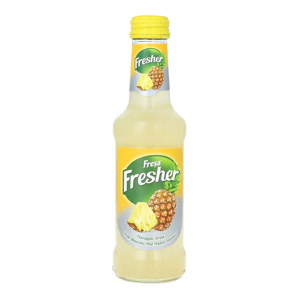 Savor the refreshing taste of Fresa Fresher Pineapple Drink. Made with real pineapple juice, every sip is bursting with natural sweetness and flavor. Enjoy the convenience of a 200ml size, perfect for on-the-go hydration. Quench your thirst with Fresa Fresher, the perfect choice for a delicious and energizing beverage.