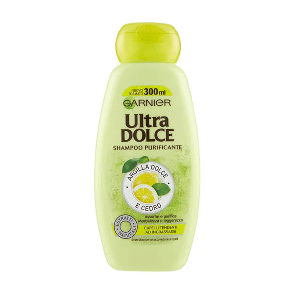 Garnier Ultra Dolce Shampoo Argilla Dolce (300 ml) is a gentle cleansing shampoo enriched with sweet clay (Argilla Dolce) and is designed to balance and purify the scalp while providing nourishment to the hair. It is ideal for those with oily or sensitive scalps and provides a refreshing, clean feel without drying out the hair.