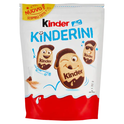 Kinderini: crispy biscuits with delicious milk and cocoa details on the eyes and mouth. 18 different expressions to reinvent snack time!