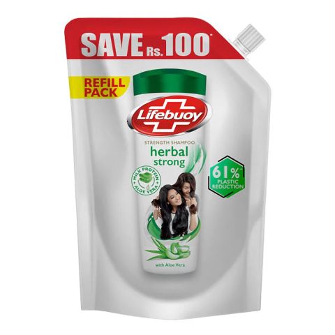 Lifebuoy Herbal Strong Milk Protein+Aloe Vera Strength Shampoo Refill Pack, 360ml