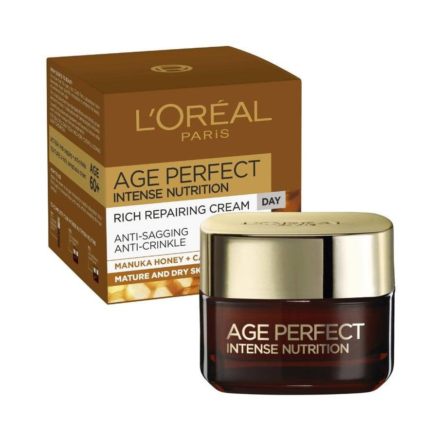 L'Oréal Age Perfect Manuka Honey Day Cream 50ml is a nourishing day cream specifically formulated for mature skin. Infused with Manuka Honey, known for its rich, moisturizing properties, this cream helps to restore skin's natural radiance and hydration. It works to improve skin texture, making it feel smoother and more elastic, while also helping to reduce the appearance of fine lines and wrinkles. The lightweight, non-greasy formula is designed for daily use, leaving the skin feeling soft, plump, and rejuvenated.