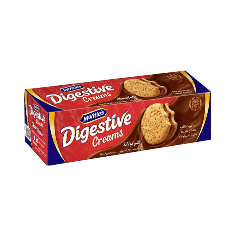 McVitie's Digestive Cream Chocolate Biscuit 100g is a delicious and indulgent treat that combines the classic crunch of McVitie's digestive biscuits with a rich and creamy chocolate filling. The whole wheat biscuits provide a satisfying, slightly nutty crunch, while the smooth, creamy chocolate center adds a layer of sweetness and indulgence, creating a perfect balance of flavors and textures.