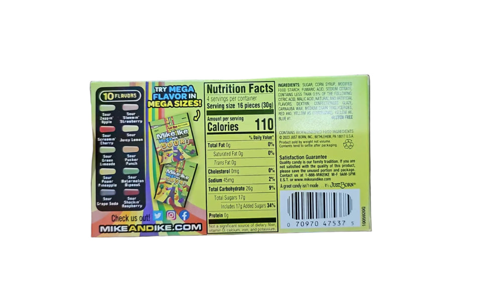 Discover a sour twist on the classic Mike And Ike candy with our Mega Mix Sour! This assortment of flavors brings together the perfect balance of tart and sweetness. With an array of fruity flavors, indulge in a taste sensation that will leave your taste buds wanting more.