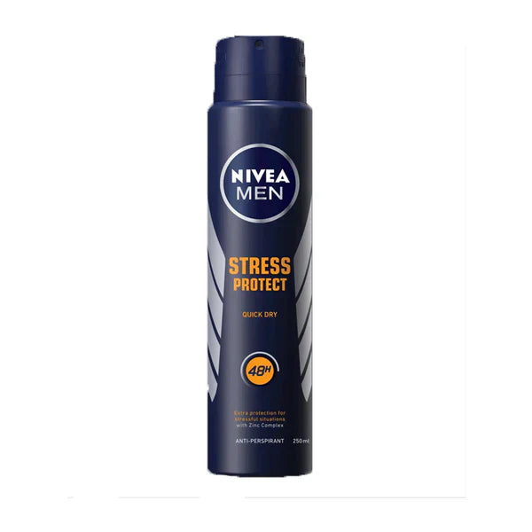 NIVEA Body Spray Stress Protect 200ml is a deodorant spray designed to provide long-lasting protection against body odor, especially during stressful moments. It features a unique formulation that helps to reduce the impact of stress on body odor, keeping you feeling fresh and dry for up to 48 hours.