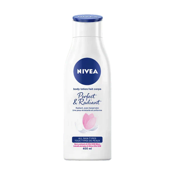 NIVEA Lotion Perfect & Radiant 400ml is a moisturizing lotion that is designed to enhance the natural radiance of your skin. This lotion helps to nourish and hydrate your skin, leaving it smooth and luminous. Here are the main features: