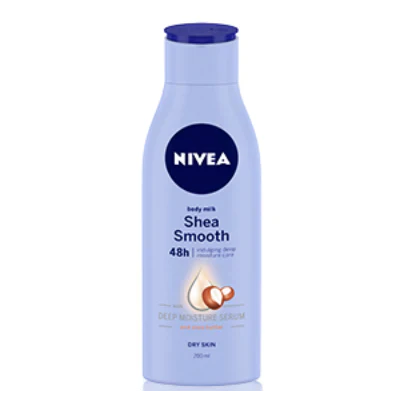 Your wait for softer, moisturized skin that lasts is over. The NIVEA® Shea Nourish Body Lotion (previously called Shea Daily Moisture Body Lotion) is a lightweight formula that is infused with our Deep Moisture Serum and Natural Shea Butter for noticeably smoother skin. The lotion gently melts into skin leaving it silky and smooth for 48 hours with just 1 application.