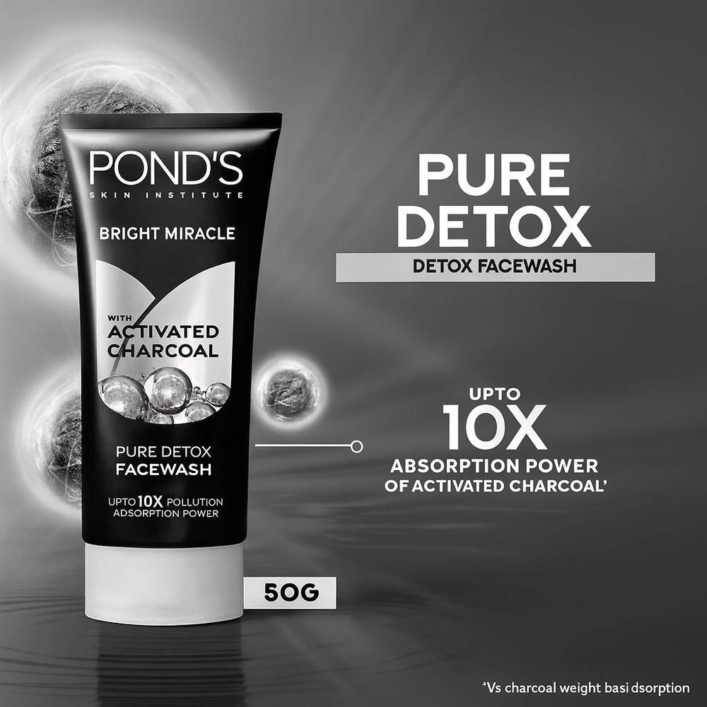 Pond's Bright Miracle Pure Detox Face Wash With Activated Charcoal, 50g