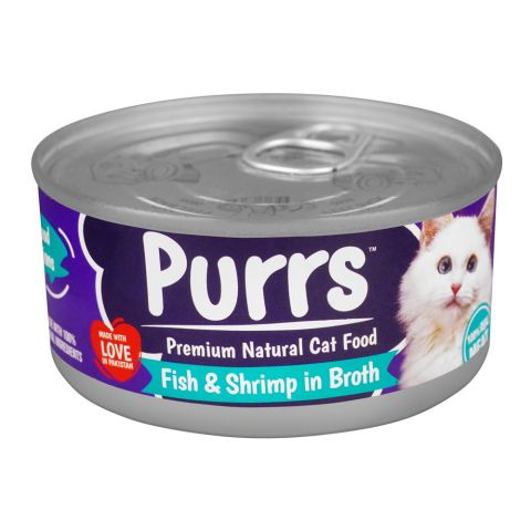 Purrs Premium Natural Cat Food, Fish & Shrimp In Broth, 130g
