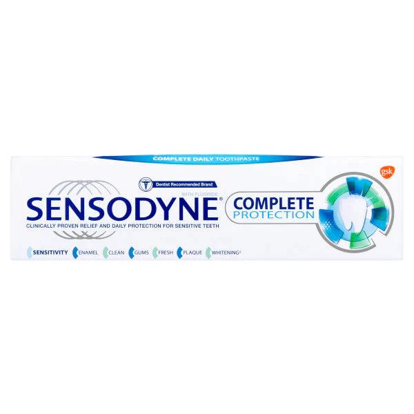 - Sensodyne Complete Protection contains ingredients that help protect and soothe sensitive teeth. It works by building a protective layer over sensitive areas of the teeth, reducing discomfort when eating or drinking hot, cold, or sweet foods.