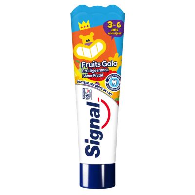 Signal Kids Fruits Golo toothpaste is specially formulated for kids aged 3-6. Containing fluoride, it helps protect their teeth against cavities and keeps their teeth strong. With a delicious fruity flavor, it encourages children to brush their teeth.