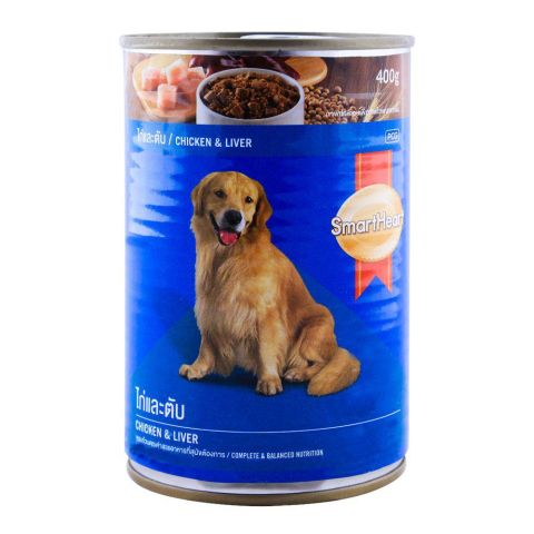 SmartHeart Chicken & Liver Dog Food, Tin, 400g