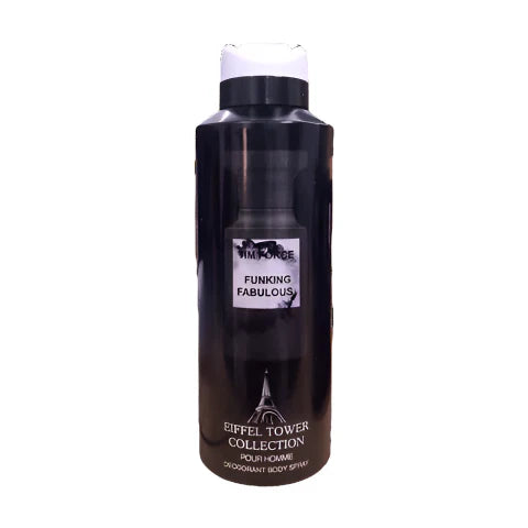If "Tim Force Funking" is the name of a particular fragrance or body spray, it could suggest a playful or energetic scent, possibly leaning toward fresh, bold, or even slightly unconventional notes. The Eiffel Tower packaging would give it a distinctive and collectible appeal.