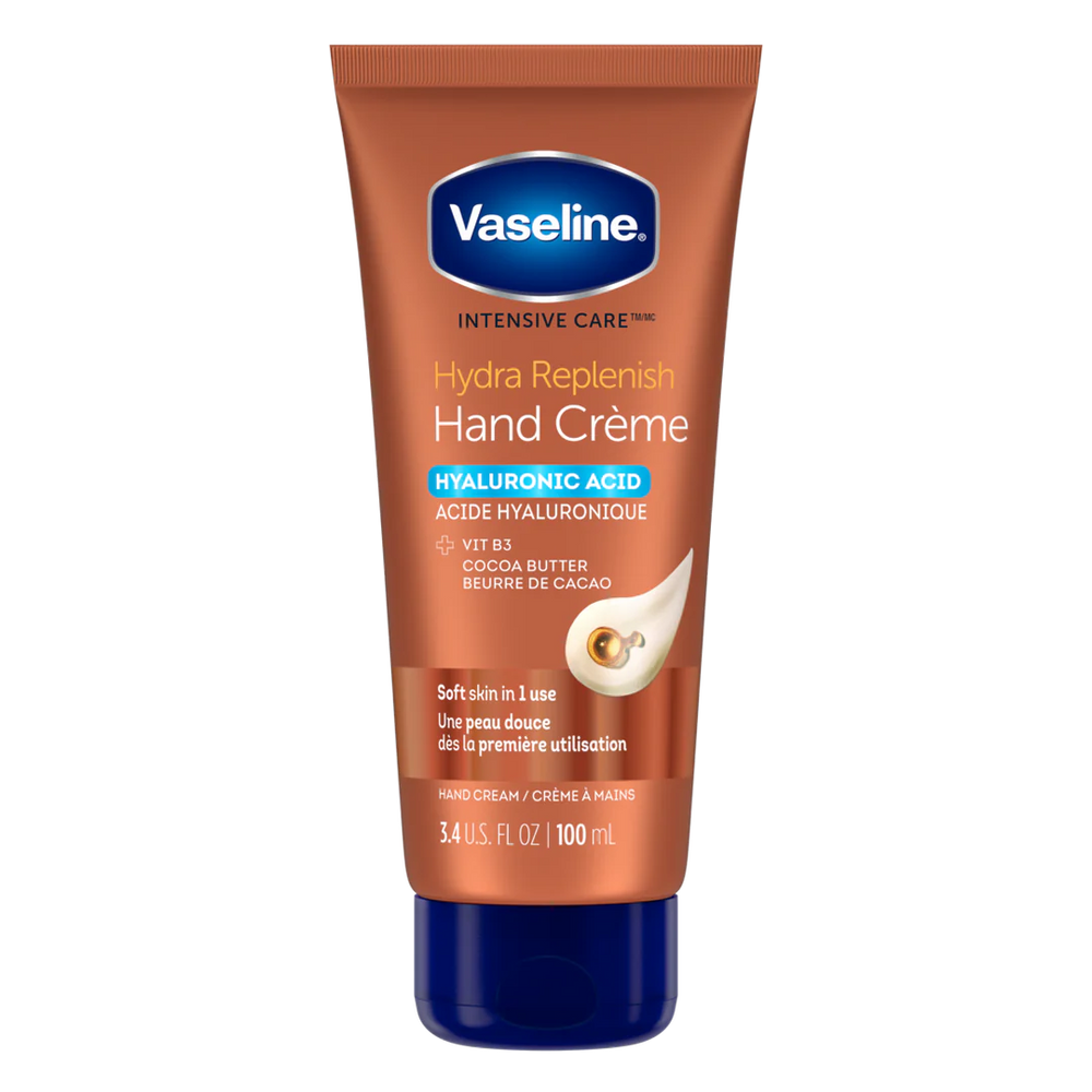 Vaseline Cocoa Butter Hyaluronic Acid Hydra Replenish Hand Cream delivers intensive moisture restoration for dry hands. Formulated with hyaluronic acid, this 100ml cream locks in hydration while cocoa butter nourishes and repairs skin's moisture barrier. Clinically proven to provide long-lasting relief from dryness without the greasy residue typical of conventional hand creams. Ideal for daily use to maintain soft, supple hands even in harsh conditions.