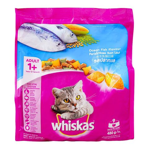 Whiskas Ocean Fish Flavor Adult Cat Food, 480g